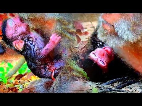 Today, deep within the peaceful stillness of the forest, a quiet celebration unfolds—one not marked by noise or spectacle, but by love, instinct, and the miracle of new life. A devoted mother monkey has just brought her newborn into the world, and the air is filled with reverence as the first rays of morning sunlight dance gently through the treetops.