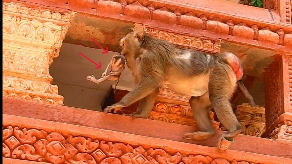 In the heart of the forest—where life often pulses with playful energy and the joyful calls of young monkeys—a quiet sorrow has taken root. Beneath the canopy, where light filters softly through the leaves, a young mother monkey lies curled around her newborn, who trembles weakly at her side. The baby, wrapped in delicate downy fur, is barely strong enough to lift its tiny head. Its cries, soft and strained, echo not with hope, but with fading strength.
